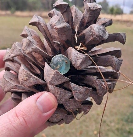 A member of our writing circle recently posted a picture that evoked much curiosity. Whilst on a walk deep in the woods, he found a pine cone with a large marble deeply embedded between the wooden slats. What a mystery. Why is a marble lodged inside a pine cone? Who put it there and why? How did it get in there? Did they lose it, or is it a sinister message? Some of us surmised it was shot from a catty, and others fantasised about fairies and goblins. My response was, “Aaah, so that’s where I lost my marbles,” which elicited a few LOL emojis. But seriously, losing one’s marbles can have both hysterical and disastrous consequences, so my muse was prompted to write about my experience with marbles.